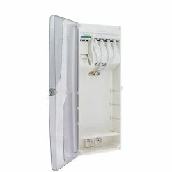 - Cette zone attenante est équipée d’une prise électrique et d’un espace dédié à permettre l’installation de la box Internet, d’appareils multimédia (box domotique, switch RJ45, etc).
